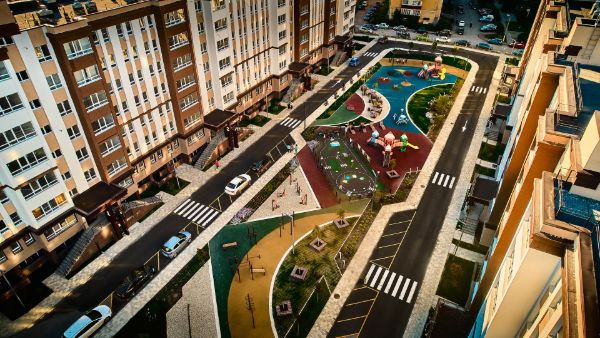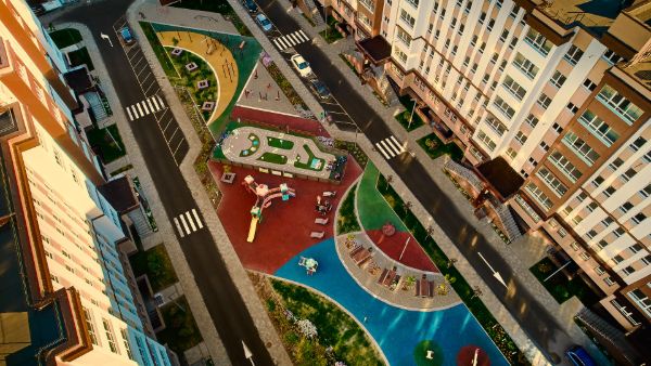 Уникальное благоустройство дворов. Планируются изолированные площадки с игровыми комплексами для детей разного возраста (отдельно - до пяти лет и старше), воркаут-зона с тренажерами, беседки для отдыха взрослого населения.